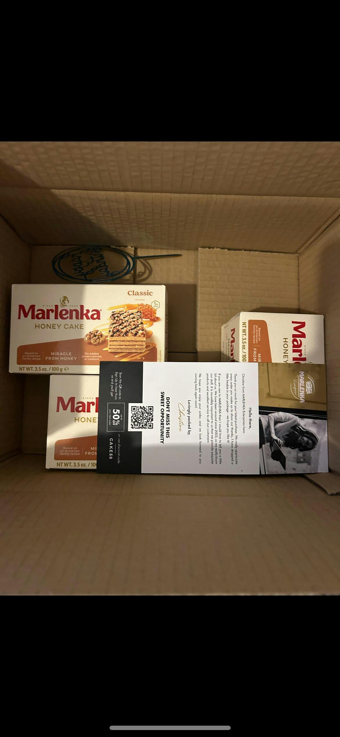 MARLENKA® is a traditional mini honey cake, made according to an old Armenian family recipe. The secret manufacturing procedure enable us to combine the honey and milk mixture to create this multi-layered honey delicacy. The top is drizzled with chocolate icing and sprinkle with chopped walnuts.